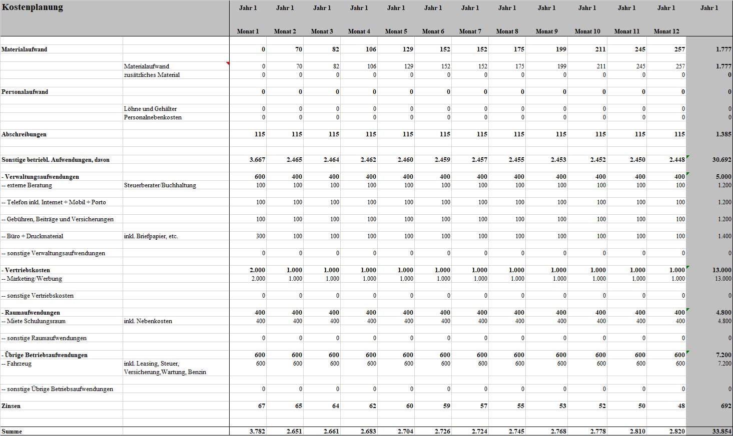 In Microsoft-Excel geschrieben, so dass du ihn jederzeit für deine eigene Existenzgründung anpassen kannst.