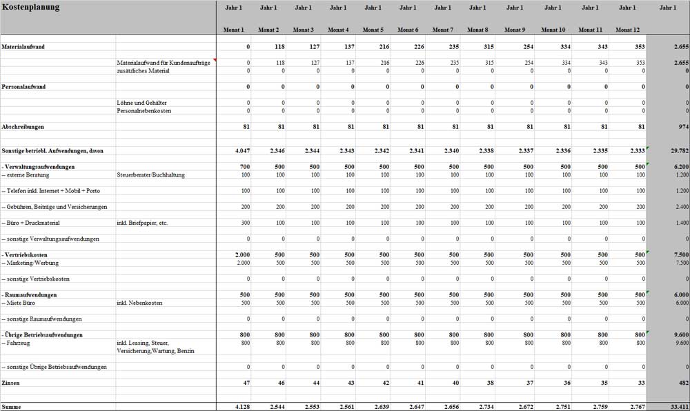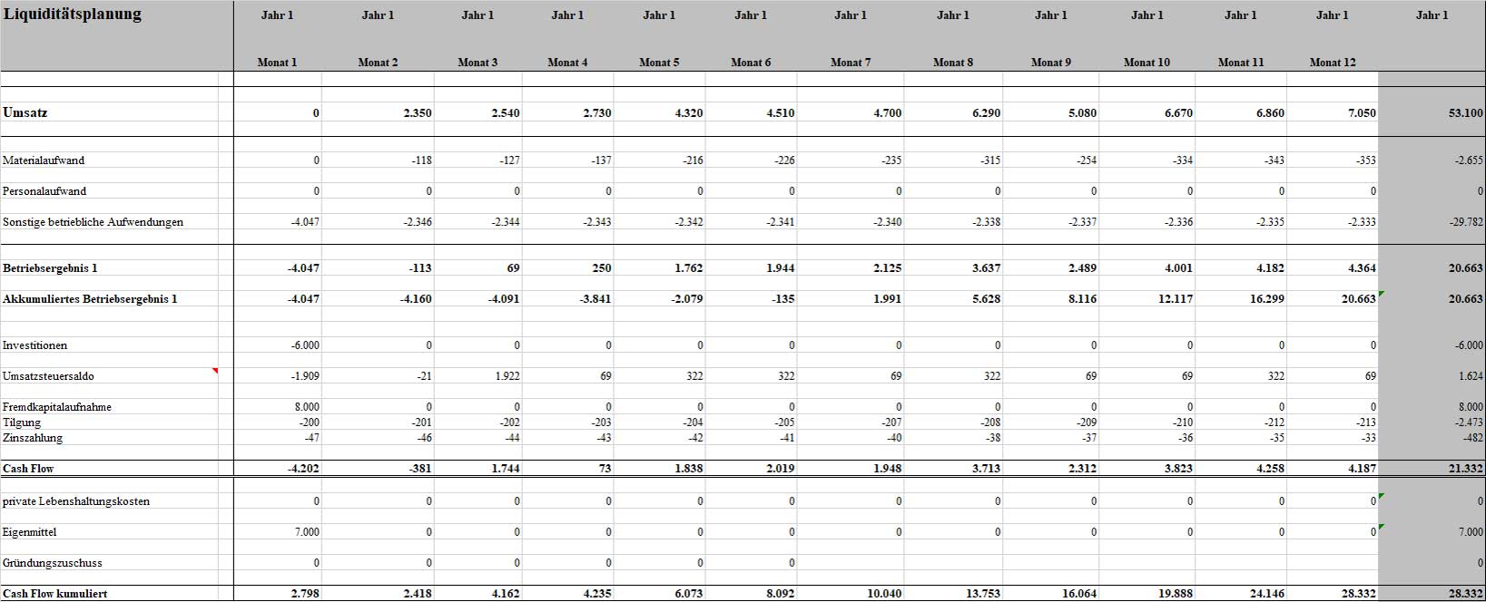 In Microsoft-Excel geschrieben, so dass du ihn jederzeit für deine eigene Existenzgründung anpassen kannst.